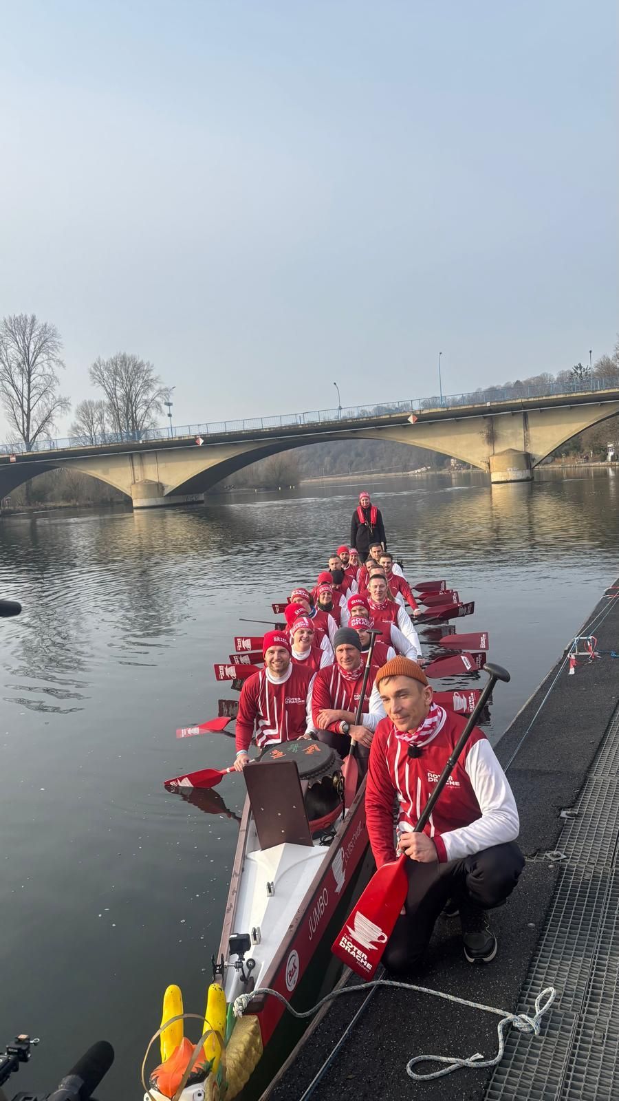Roter Drache? Moment mal? Richtig, das Team ist eigentlich eher auf dem Wasser unterwegs und gehört zu den besten Drachenbootteams in Deutschland. „Aber in der Corona-Zeit haben sich einige von uns ein Rennrad gekauft und dann haben wir irgendwann dieses Rennen entdeckt“, erklärt Fillip den zeitweisen Wechsel vom Wasser auf die Straße. Seitdem gehört das 24-Stunden-Rennen einmal im Jahr als festes Event dazu.